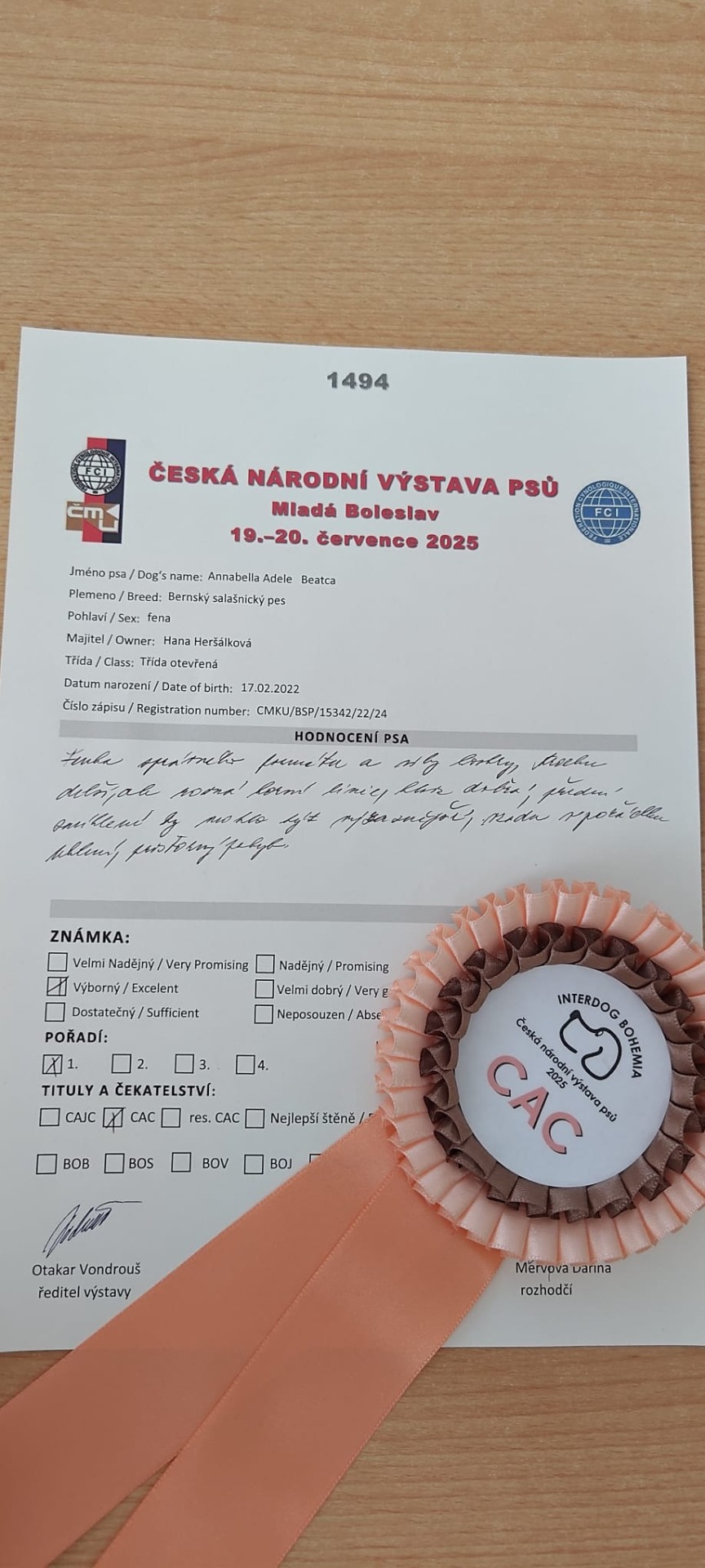 No, a jak to dopadlo? Nad očekávání! Jeli jsme si pro zápis, abychom měli splněno pro podzimní bonitaci, a ze zápisu V1 CAJC Vítěz speciální výstavy mladých- feny se budu radovat ještě hodně dlouho!